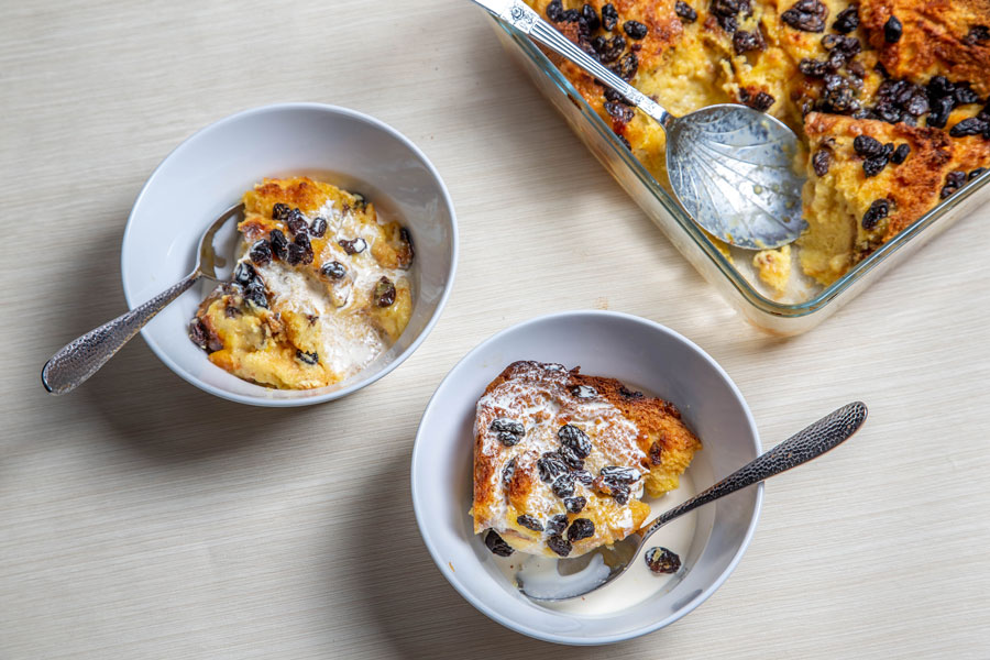 Combine the cinnamon, coriander, nutmeg, allspice, cloves, ginger, and optional mace to make the Irish mixed spice mix; set aside. Soak the raisins and cranberries in the whiskey for several hours or overnight, then drain the fruit and reserve the soaking liquid for the sauce. Preheat the oven to 400°F and butter a 7 × 11–inch baking dish, then butter both sides of the bread slices and cut them diagonally. In a medium bowl, whisk together the heavy cream, eggs, white sugar, brown sugar, Irish mixed spice, and vanilla extract. Layer the bread and soaked fruit in the prepared dish, pour the cream mixture over the top, and press gently so all the bread is well soaked. Place the filled dish into a larger 9 × 13–inch pan, carefully add hot water to the larger pan until it reaches halfway up the sides of the smaller dish, and bake for 40–50 minutes until set and lightly golden. While the pudding bakes, combine the reserved whiskey, sugar, heavy cream, vanilla, and Irish mixed spice in a saucepan, bring to a boil, and cook for 1–2 minutes. Remove from heat and let stand. Once the pudding is done baking, slowly pour the warm whiskey sauce over the hot pudding a little at a time, pressing gently to help it absorb the sauce. Allow it to cool slightly before serving.